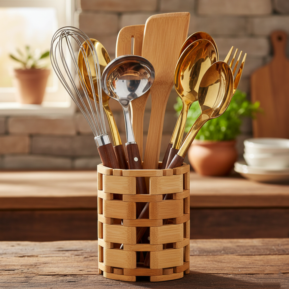 جا قاشقی بامبو انتخابی شیک و زیبا برای آشپزخانه شما! این جا قاشقی از بامبو باکیفیت ساخته شده است و فضای کافی برای نگهداری قاشقها و چنگالها، این محصول را به یک گزینه عالی برای سازماندهی و زیبایی محیط آشپزخانه تبدیل میکند.