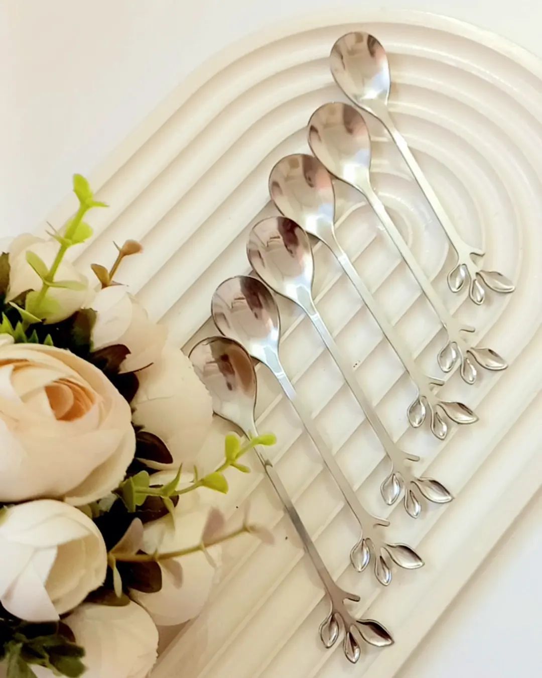 با قاشقهای مرباخوری طرح برگ، زیبایی و ظرافت را به میز صبحانه خود بیاورید! این مجموعه 6 عددی با طراحی زیبا و منحصر به فرد، جلوهای شیک به میز صبحانه شما میدهد. ایدهآل برای هدیه و تکمیل ظروف آشپزخانه.
