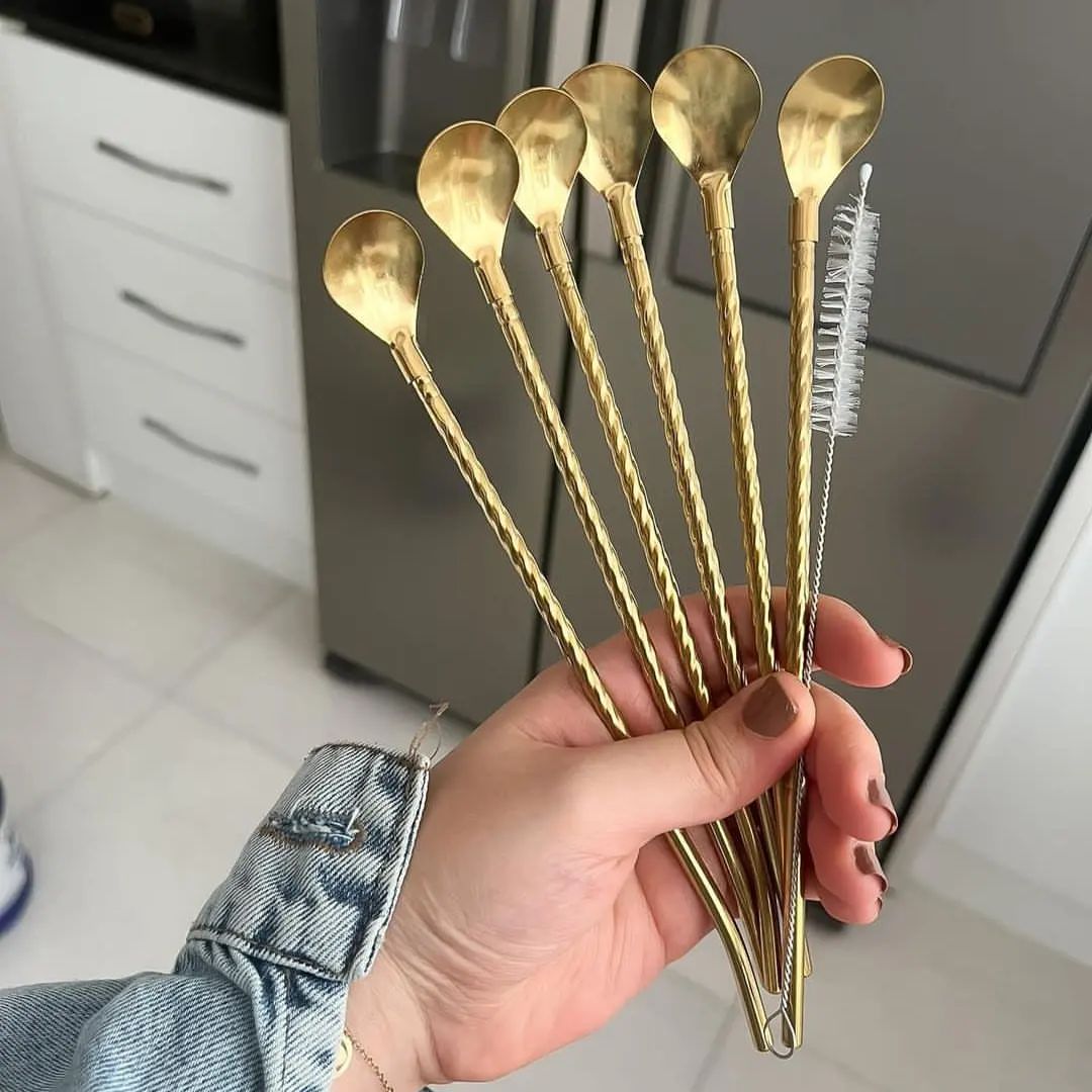 با قاشق و نی شربت استیل، تجربه نوشیدنیهای خنک و دلپذیرتان را دوچندان کنید! این محصول شیک و بادوام با طراحی منحصر به فرد خود، جایگزینی عالی برای گزینههای پلاستیکی است. مناسب برای مهمانیها و استفاده روزمره، به راحتی قابل شستشو و قابل حمل در هر مکانی است. در طراحی خلاقانه این محصول علاوه بر زیبایی رنگ و مدل، ترکیبی از نی و قاشق مشاهده می شود که برای هم زدن و نوشیدن انواع نوشیدنی ها گرم و سرد استفاده می شود. قاشق و نی شربتی استیل در بسته بندی 6 عددی از بهترین کیفیت استیل نچسب ضد زنگ می باشد.