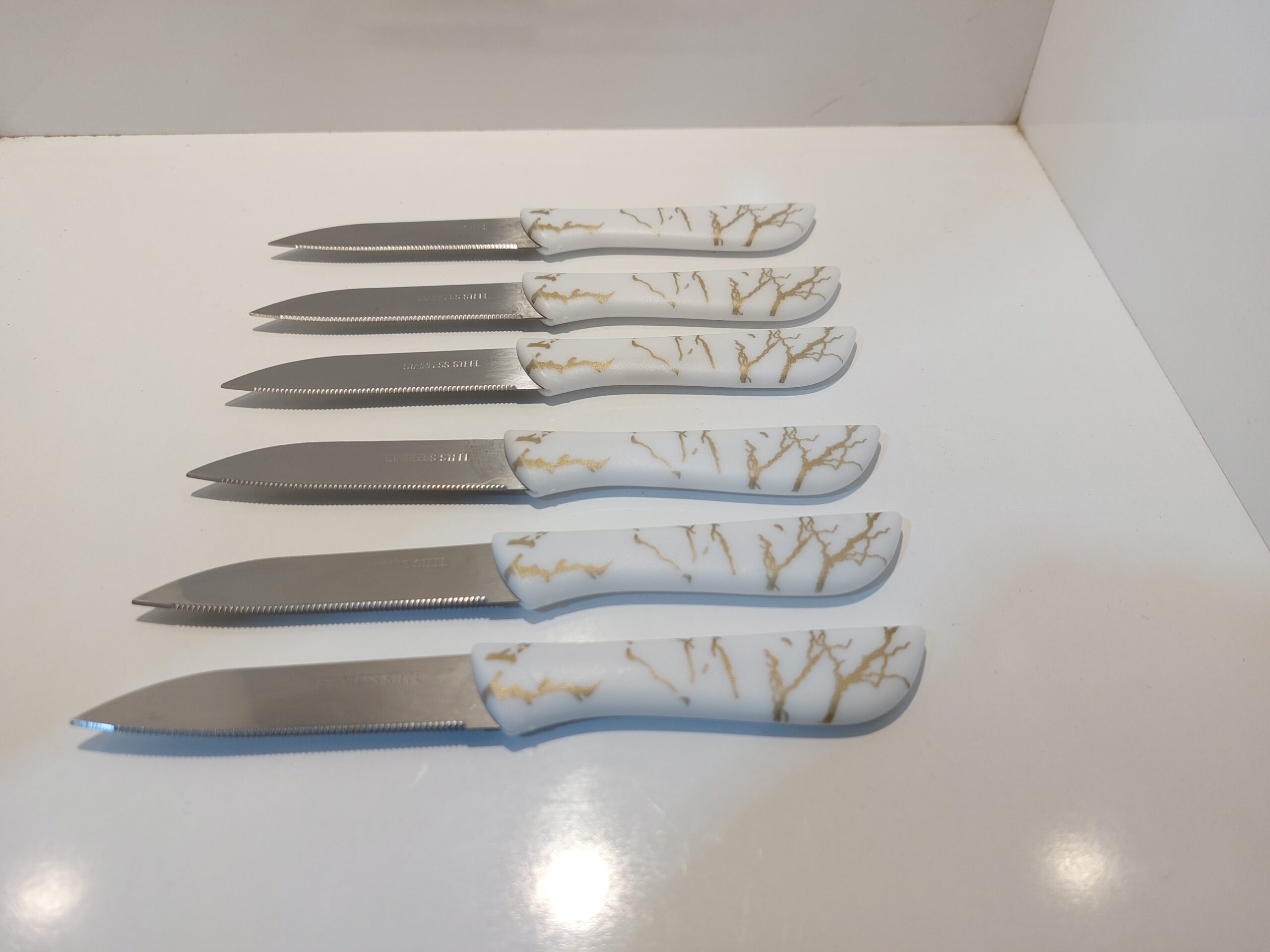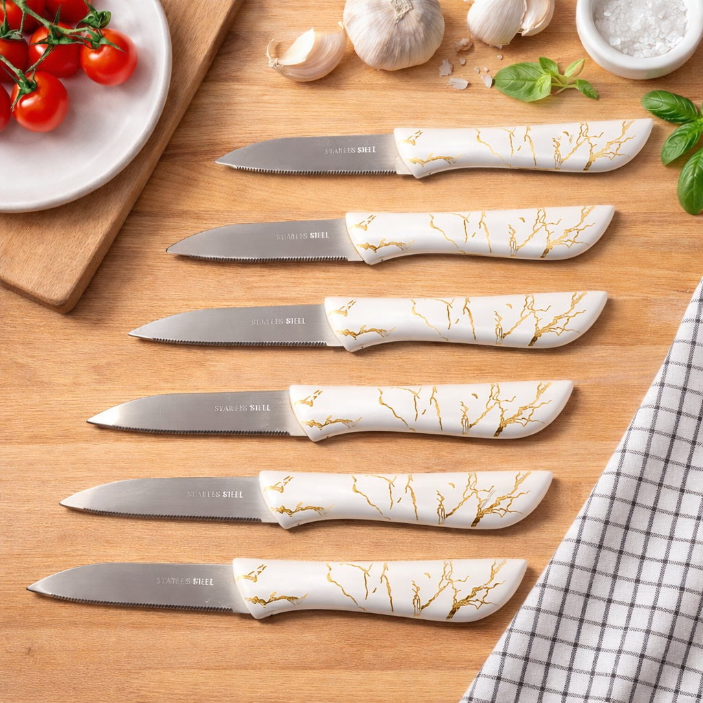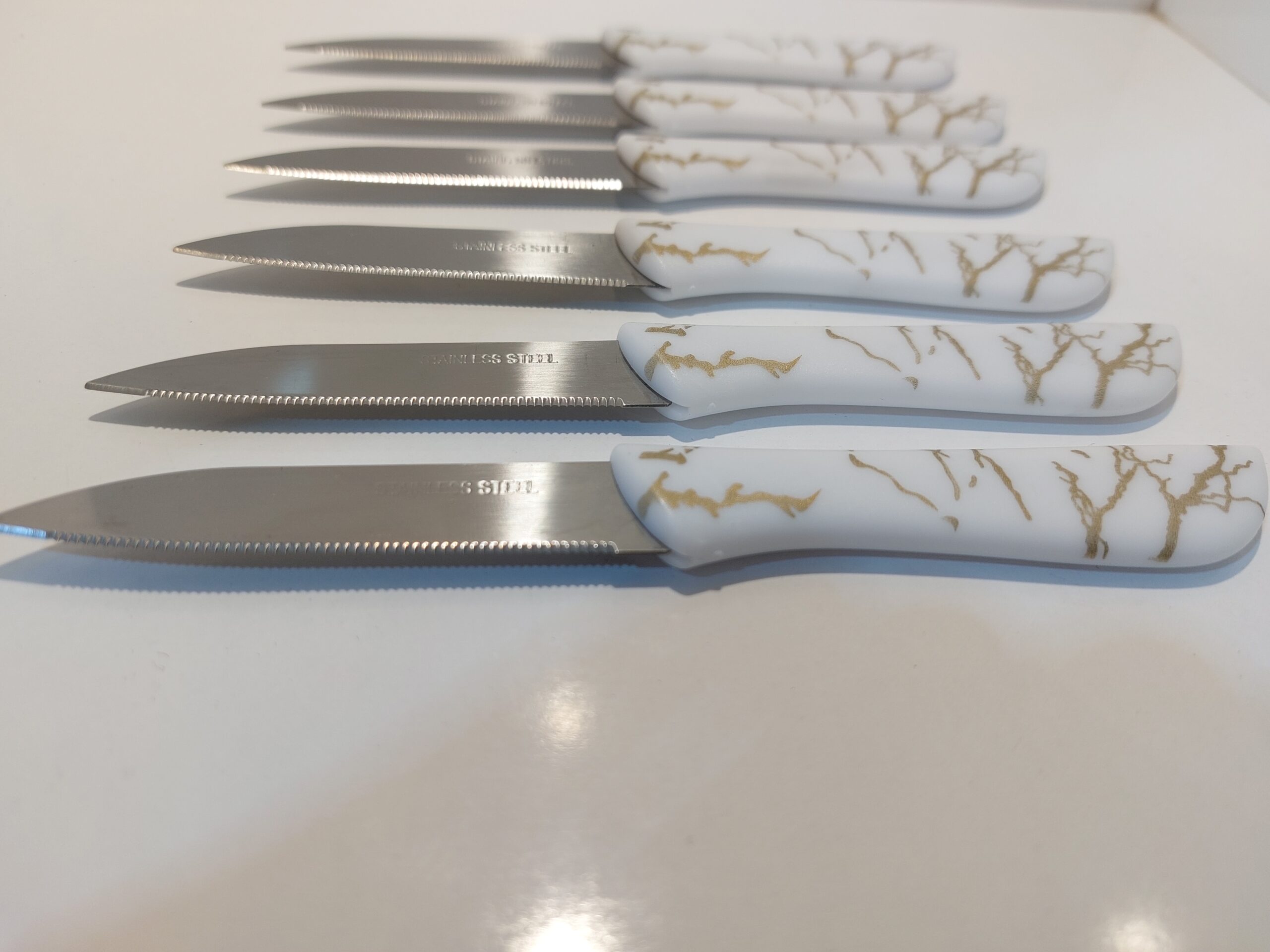 با کارد میوه ارهای طرح ماربل، تجربهای لوکس و کارآمد را به آشپزخانهتان بیاورید. طراحی زیبا با استیل ضد زنگ و دسته پلاستیکی راحت، کار برش را به آسانی و با دقت انجام دهید. این محصول با دوام و زیبا، همیار همیشگی شما در لحظات خوشطعم زندگی خواهد بود.